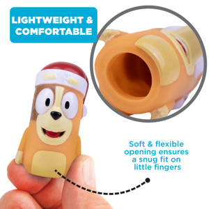 These Bluey Holiday Bath Finger Puppets are a bath time essential for little ones. Designed with little hands in mind, simply slip these tiny puppets over any finger to bring these adorable characters to life! Perfect for in the bath & out, these finger puppets make for an excellent educational resource- aiding in teaching your child colors, counting, and more! Since they are fully waterproof, bring them to the pool or the beach for an aquatic adventure with friends. Crafted with soft, thick, and durable PVC, each puppet is designed to hold up playtime after playtime. For parents, the possibilities are endless for these puppets- they make for perfect party favors and great gifts.  During the holidays, these puppets are a spectacular stocking stuffer. This pack of five includes 1 Bluey, 1 Bingo, 1 Bandit, 1 Chilli & 1 Muffin! Watch your child’s imagination soar as they use these puppets for playtime, bath time, story time, and more!