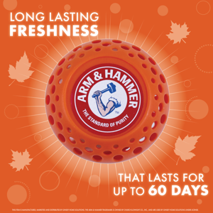 - Deodorizing balls filled with odor eliminating baking soda and Arm & Hammer's™ Pumpkin Cream scent