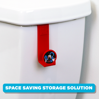 The Mickey Mouse Potty Storage Hook keeps its matching character potty seat clean and off the bathroom floor. There is a space in back of the matching character potty seat for the Potty Storage Hook to insert into. Hang the Potty Storage Hook on the toilet tank or elsewhere in the bathroom! Potty Storage Hook is easy to clean by simply wiping down with mild soap and water.